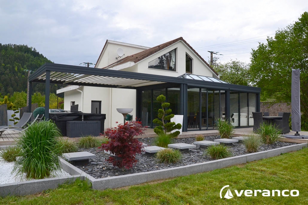 Vous hésitez entre une pergola et une véranda ? Optez pour la combinaison d’une véranda avec pergola. Cela vous permettra d'avoir un espace ouvert et fermé à l’extérieur comme à l’intérieur.
